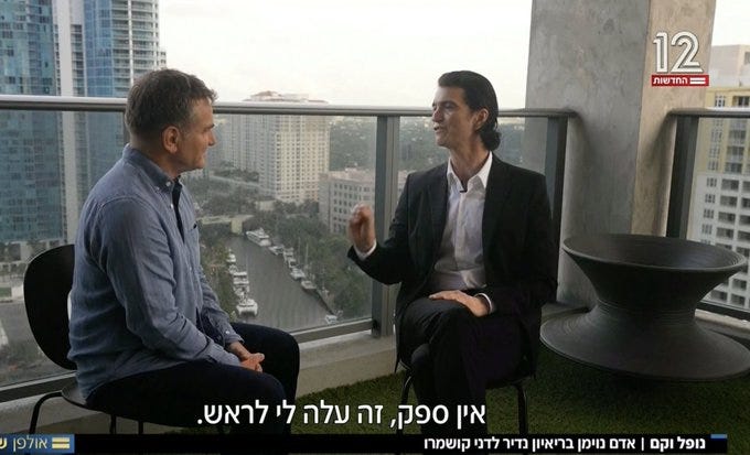 There’s an Adam Neumann inside every one of us. Or at least that’s the key message in Adam Neumann’s new PR push to rehabilitate his image on Israeli TV. Neumann, co-founder and sole-destroyer of WeWork, is possibly Israel’s most infamous tech messiah. He built WeWork into a $47 Billion office rental and spiritual wave pool company, and left it in bankruptcy.
